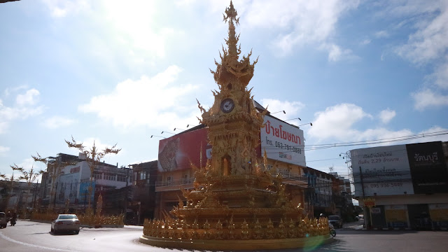 Setelah dari King Mengrai monument, perjalanan berlanjut ke Golden Clock Tower. Waktu perjalanan yang ditempuh hanya menghabiskan sekitar 10 menit. Golden Clock Tower ini berbentuk tugu yang dilengkapi jam, persis seperti yang ada di Jogja.